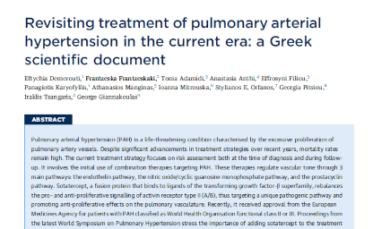 Παρά τη σημαντική πρόοδο στις θεραπευτικές στρατηγικές της πνευμονικής αρτηριακής υπέρτασης (ΠΑΥ) τα τελευταία έτη, τα ποσοστά θνησιμότητας παραμένουν υψηλά. Η παρούσα θεραπευτική προσέγγιση επικεντρώνεται στην αξιολόγηση του κινδύνου τόσο κατά τη διάγνωση όσο και κατά τη διάρκεια της παρακολούθησης. Περιλαμβάνει την αρχική χρήση συνδυαστικών θεραπειών που στοχεύουν στην ΠΑΥ.